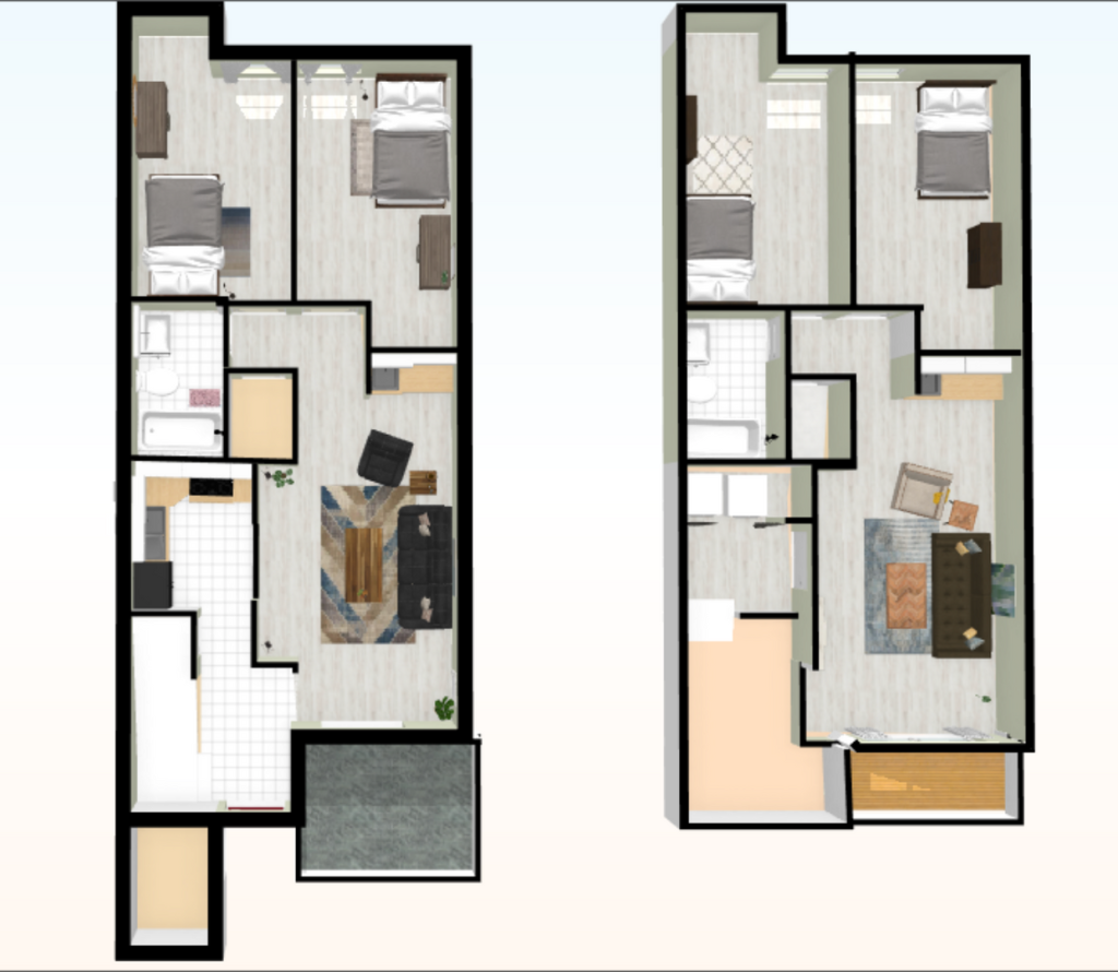 Camden Townes is located right by JMU off Port Republic Road. These townhomes have four-bedroom townhomes with two full baths. Each level offers two bedrooms, one bathroom, a mini kitchen, a living room, and a patio/balcony. There is a larger shared main kitchen on the first level and a full-size washer and dryer on the second level.