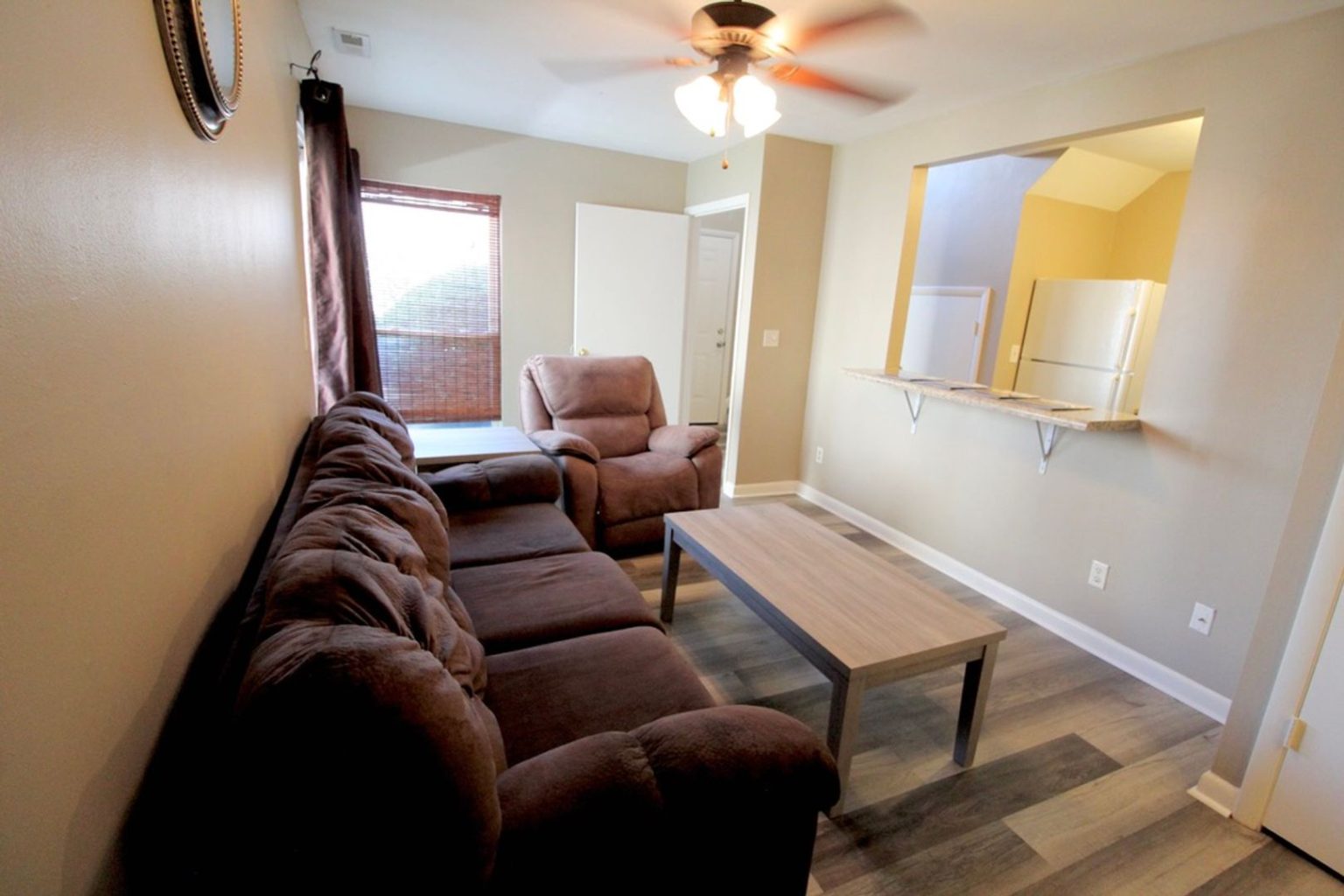 Each room rents for $575.00 with one month’s rent security deposit. This Townhome is furnished and includes electricity and water with generous caps.