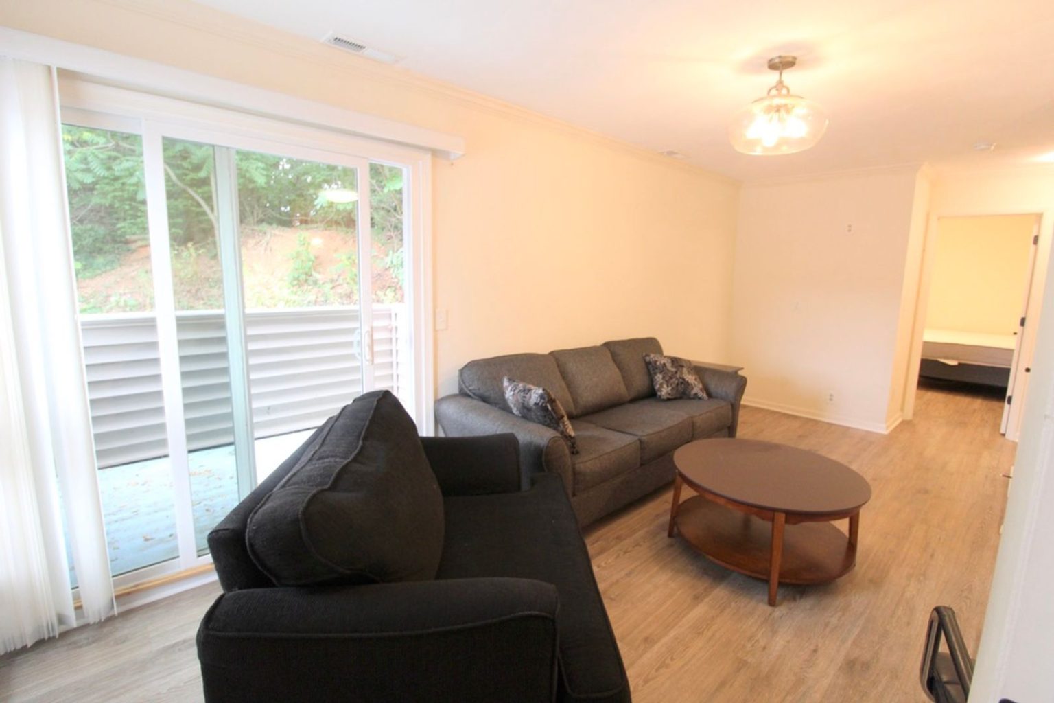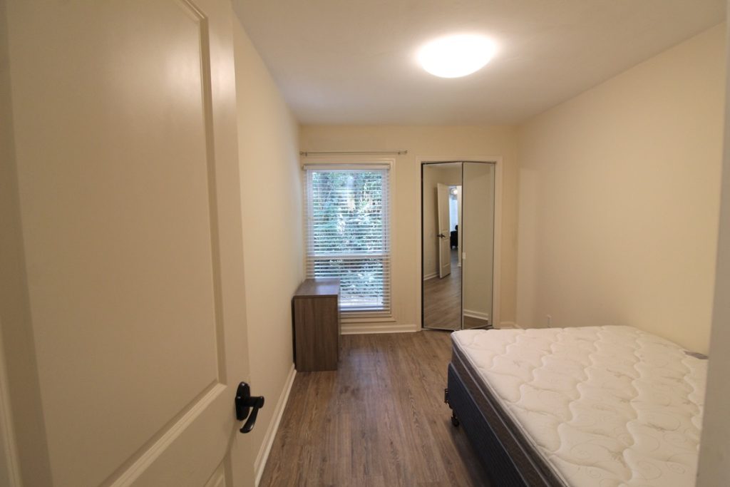 Full kitchen, living room, 2 bedrooms, 1 bathroom, and your own private balcony—per floor! Laundry is shared between the two levels, but you’ve got plenty of space to spread out.